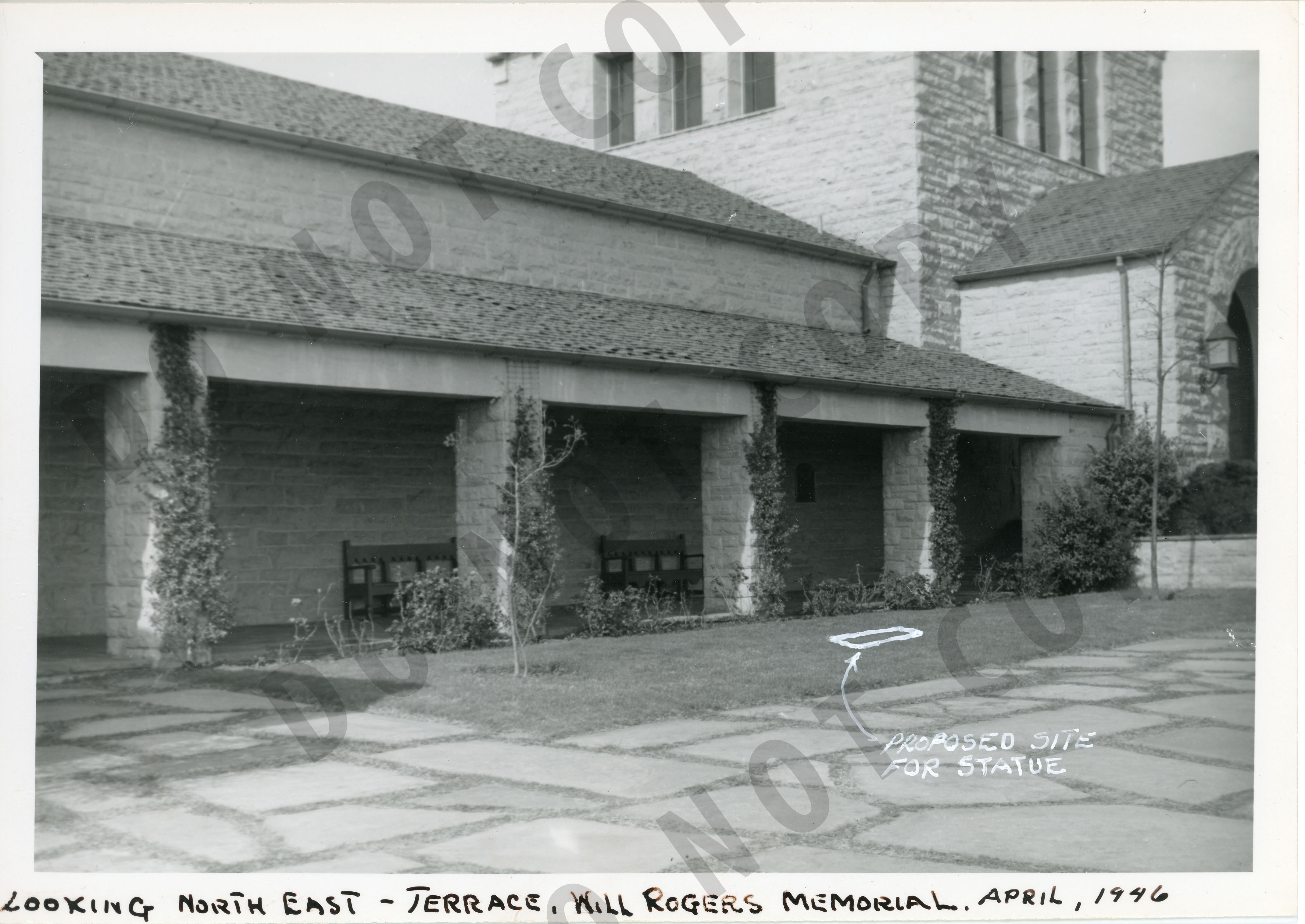 Photo of the proposed site for the Will Rogers statue by Electra Waggoner Biggs on a terrace at the Will Rogers memorial.