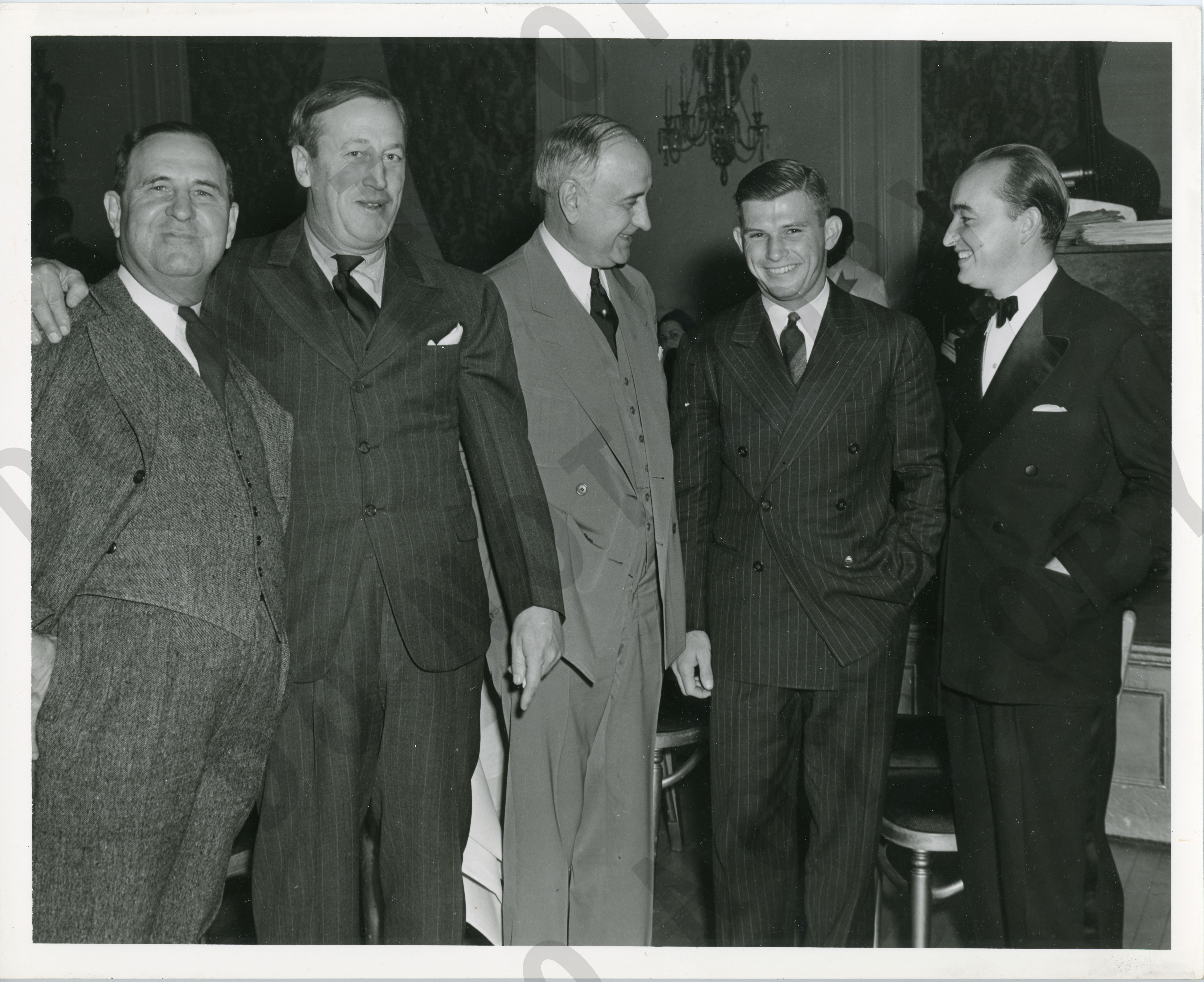 Photo of Amon Carter and Davey O'Brien with three other men.