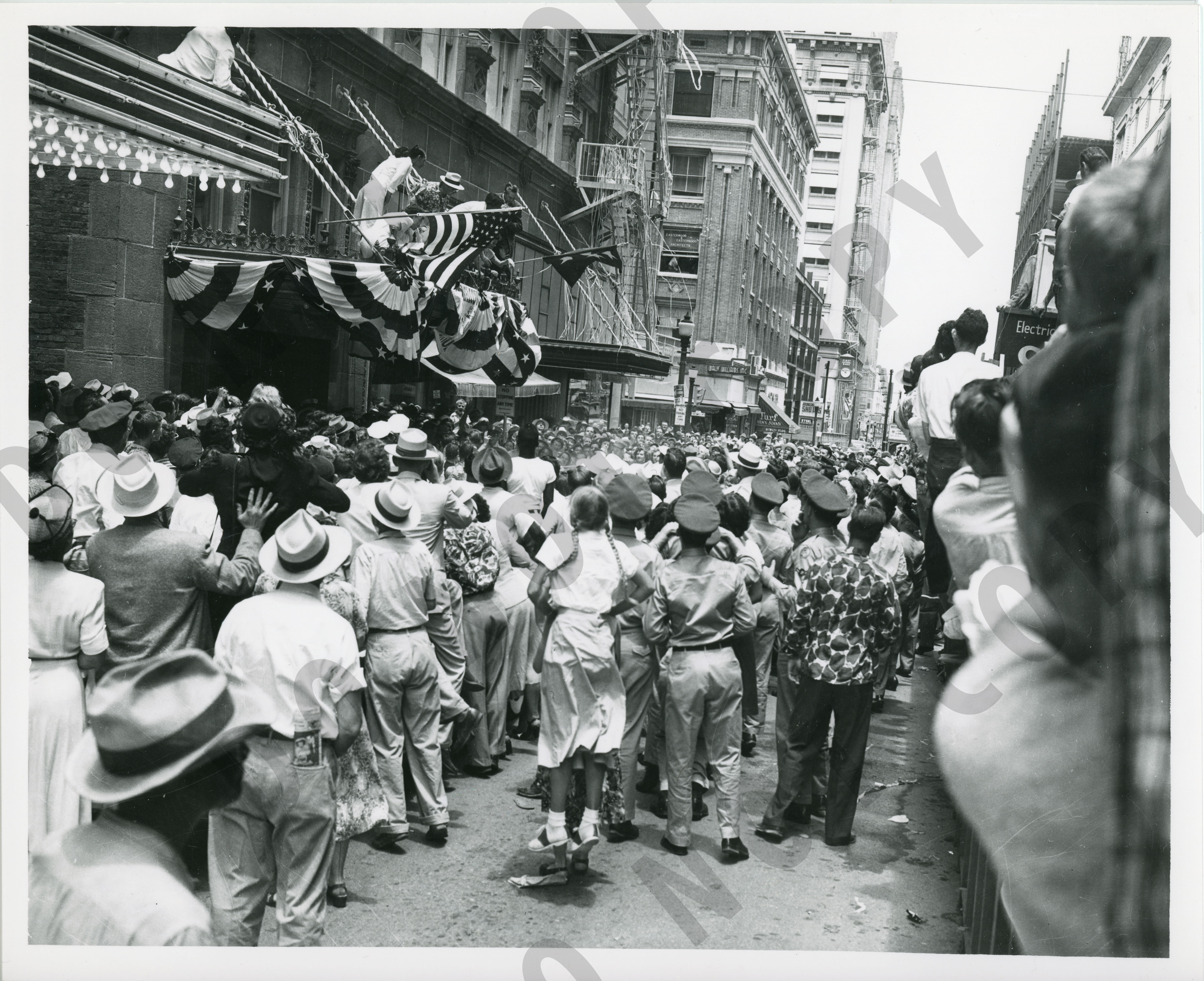 Photo of a parade welcoming Douglas MacArthur to Fort Worth.