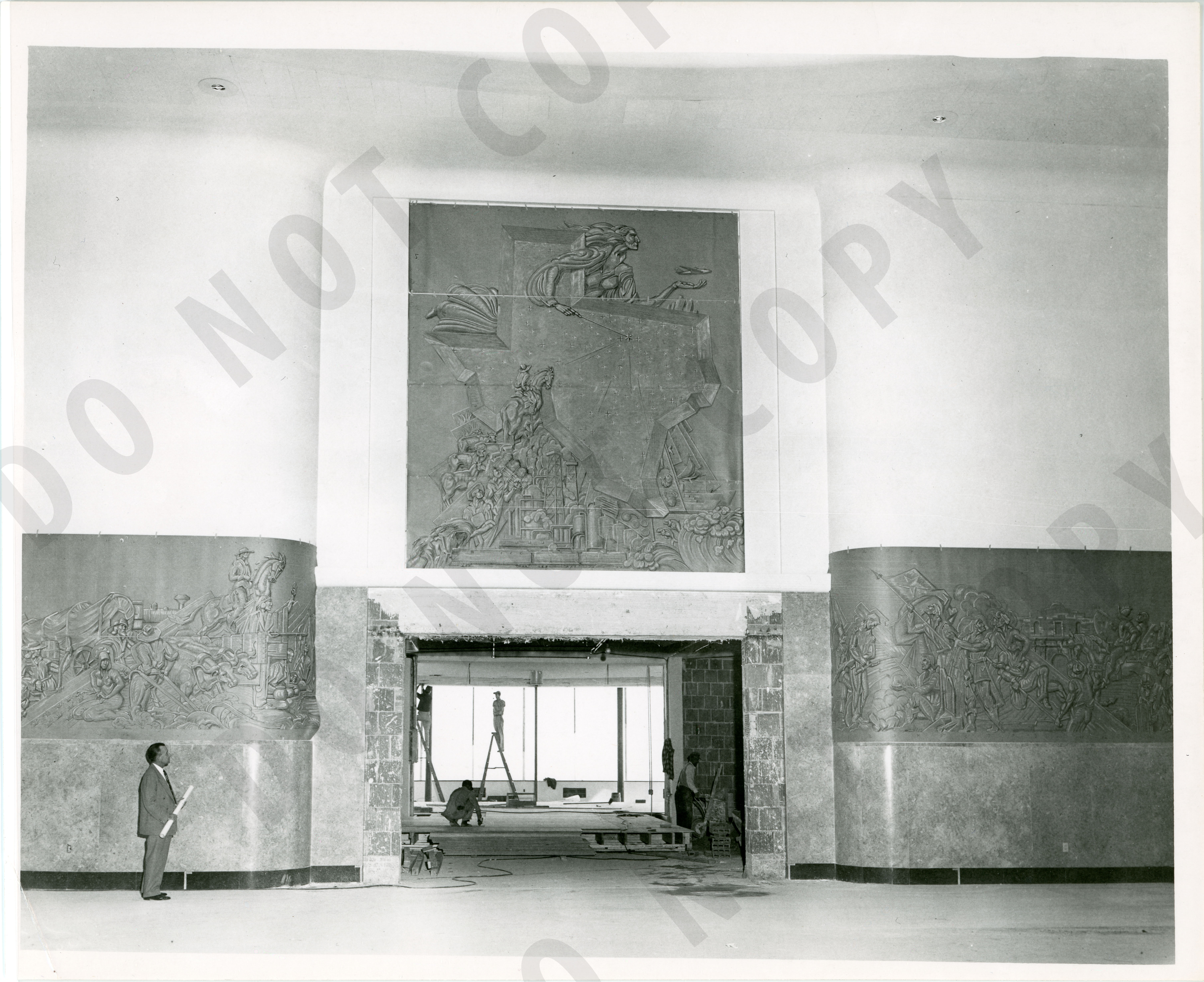 Photo of a frieze during the construction of the Greater Fort Worth International Airport.