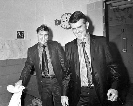 Coach Swaim and assistant coach Whitt after winning basketball championship.