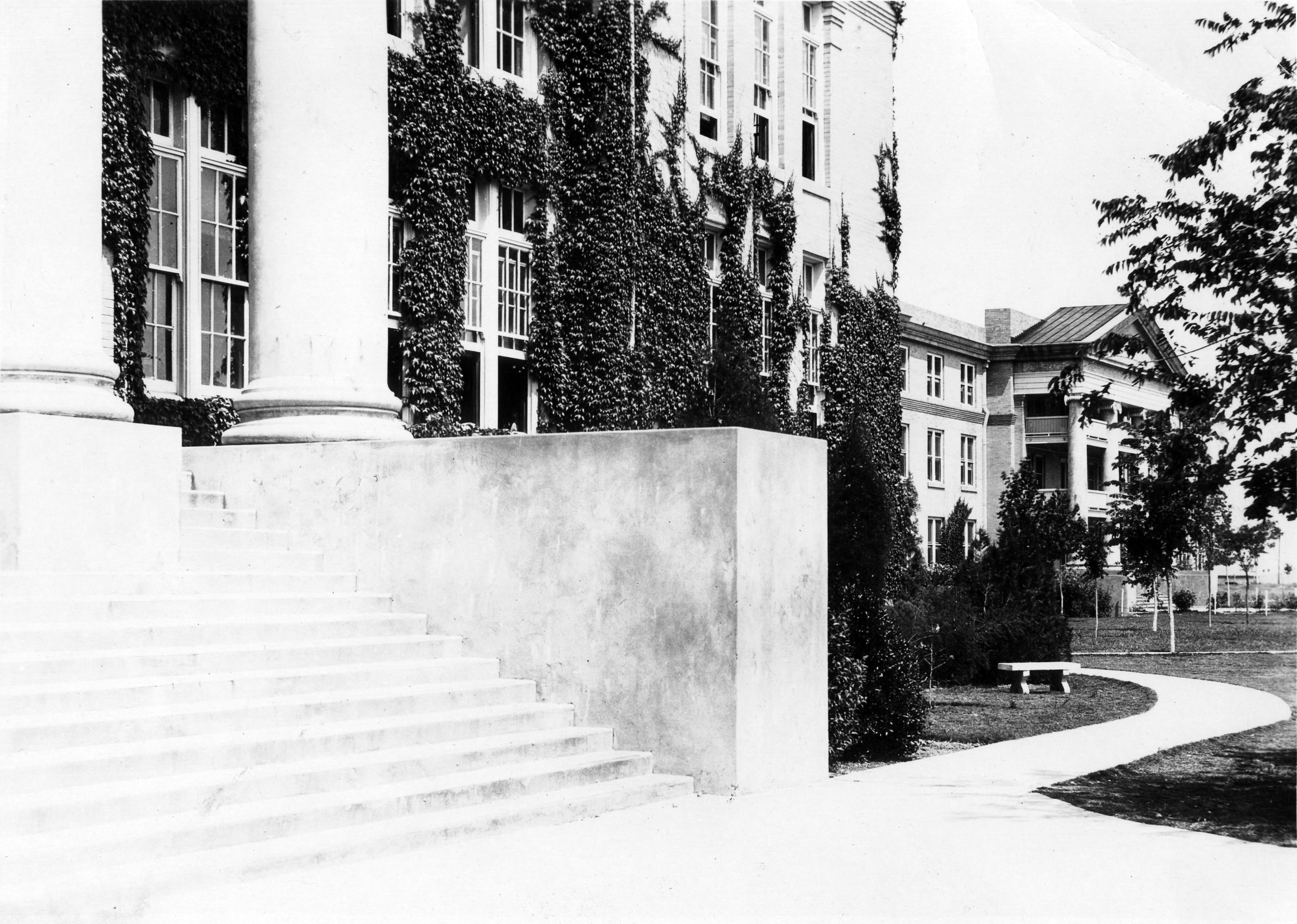 Steps of Administration Building; Jarvis Hall in background.