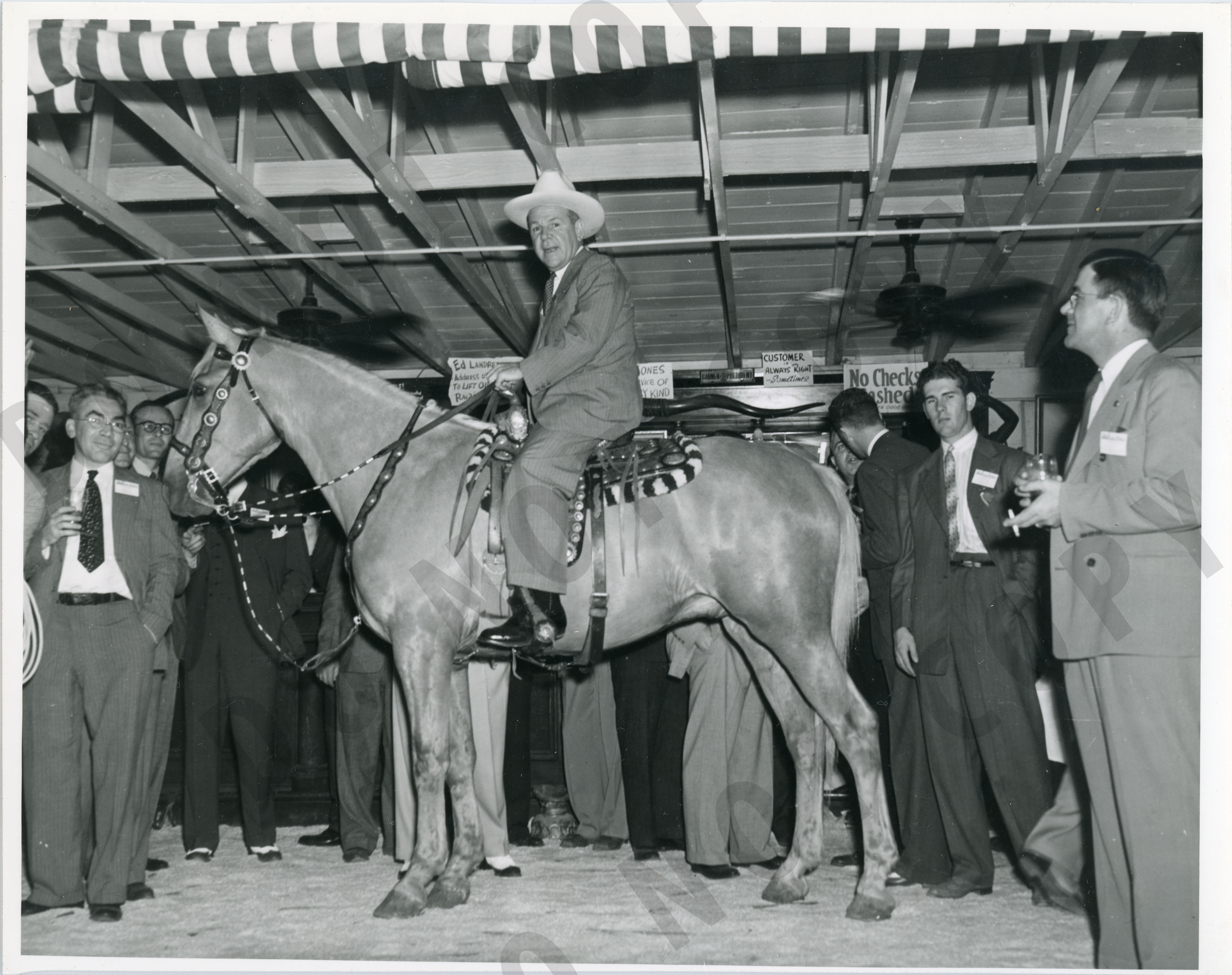H. C. Wiess on a horse at a party for the American Petroleum Institute (A.P.I.) at Shady Oak Farm.