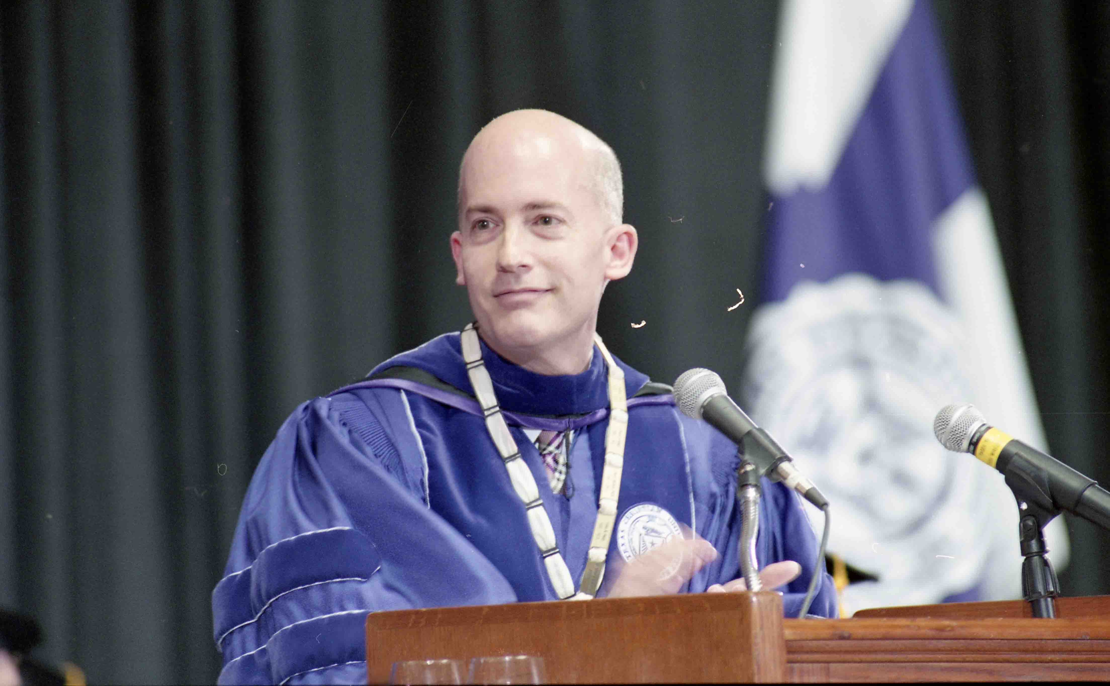 Victor J. Boschini, Jr. on stage at his inauguration as TCU Chancellor.